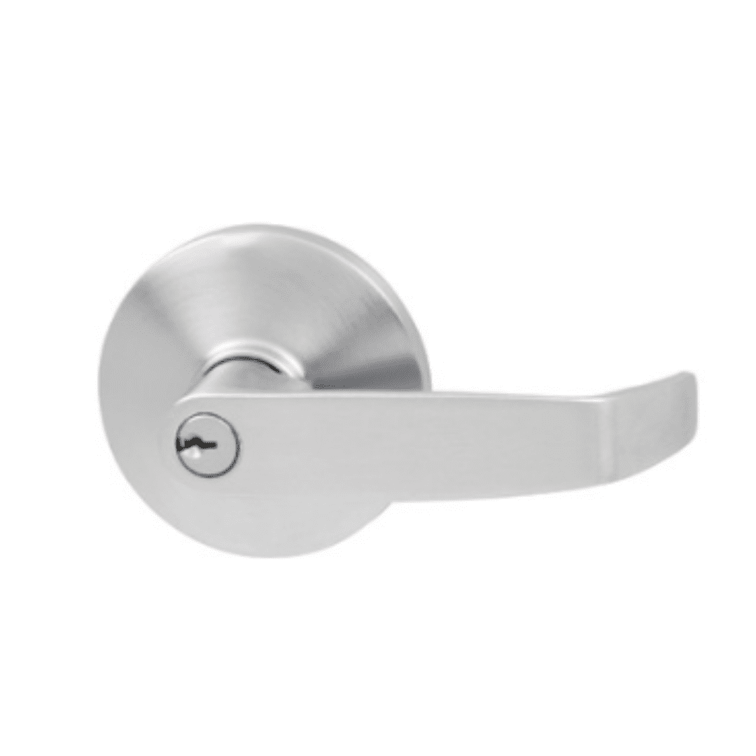 Door lever handle made of stainless steel comes in silver color with matt finishing round rosette. And used for door locking hardware a Hafele product.